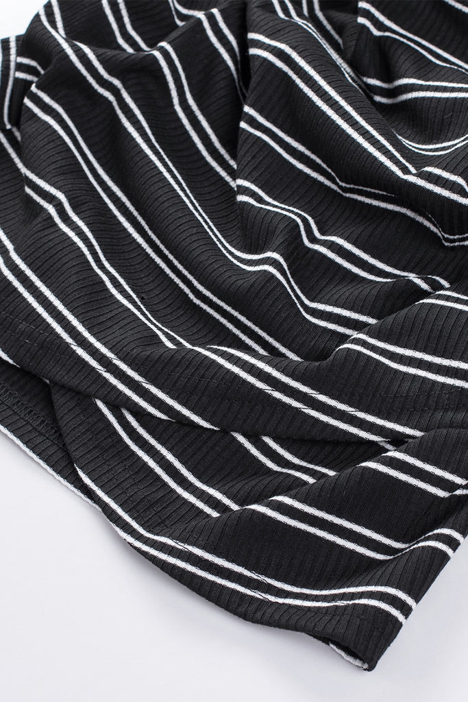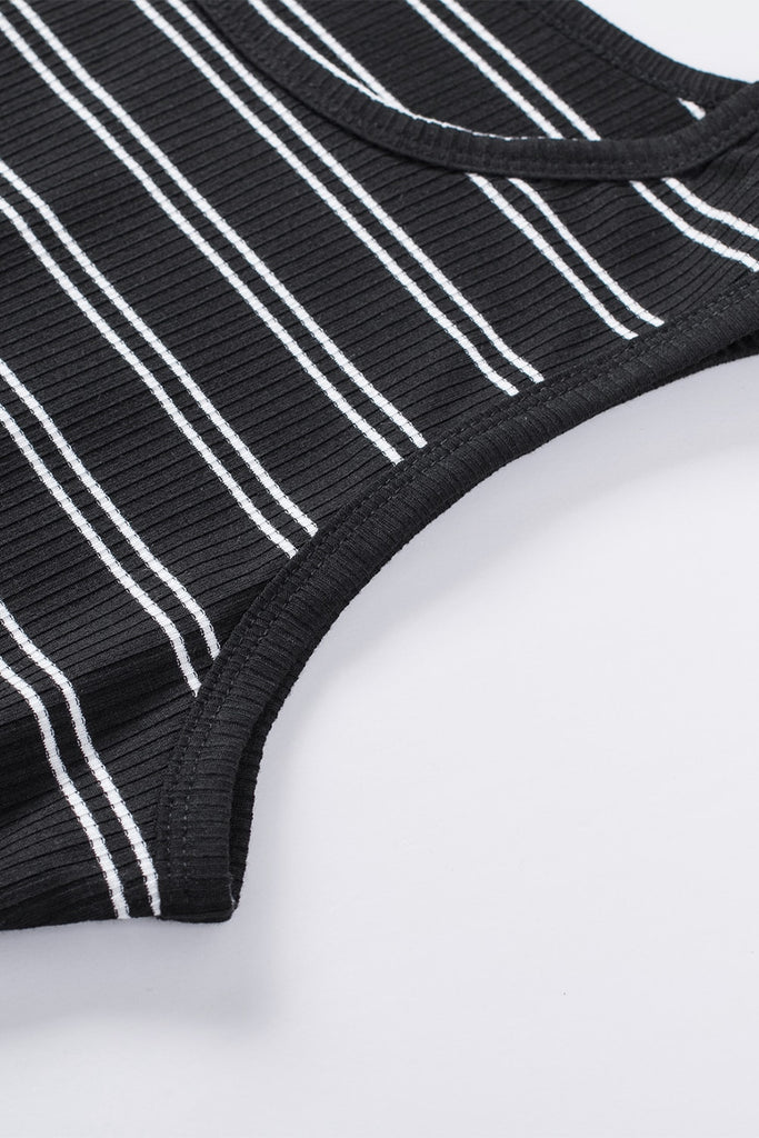 Create summer memories to last a lifetime with this sensational dress. You'll enjoy every moment wearing this black and white striped, tank style dress. It features a fitted, stretchy material with ruching detail from the hips down so you can adjust the length to your liking and height. Make it longer or shorter depending on how you want to wear it. The asymmetrical design on the bottom is a chic style with a beautiful silhouette.